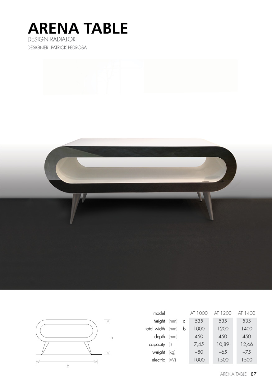 These are the ideals behind the conception of the electric radiator Arena Table. Pure design associated with the functionality of heating different spaces.