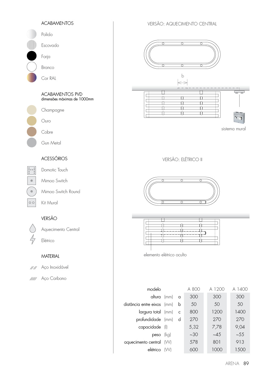 O Arena poderá ser personalizado através da escolha e conjugação de diferentes materiais e acabamentos.