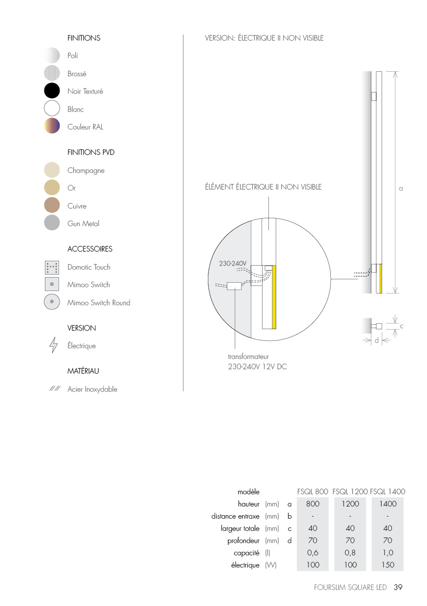 Le sèche-serviettes électrique Fourslim Square Led en acier inoxydable a comme fonction le chauffage de serviettes ainsi que de permettre avoir une lumière subtile ayant une faible consommation d’énergie.